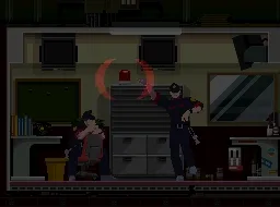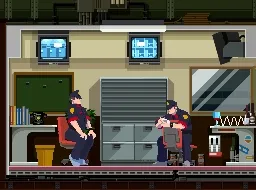 I’ve never seen animation this smooth in a DS game! It’s not like these are pre-rendered cutscenes either (believe me, you can tell when those happen because the DS’s video compression does them no favors). Big shout out to this old Let’s Play for all these gifs, by the way. The 3D animation coupled with the 2D x-axis-locked camera leads to this really neat theatrical effect which I think is very cool. My biggest regret playing Ghost Trick is that I opted for the original Nintendo DS edition instead of shelling out for the 2023 remaster which is all up-scaled and remixed. Go play that one!